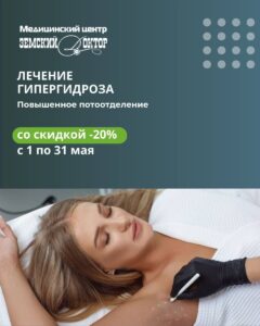 🎁С 1 по 31 мая в МЦ «Земский Доктор» — СКИДКА 20% на инъекционное лечение гипергидроза!